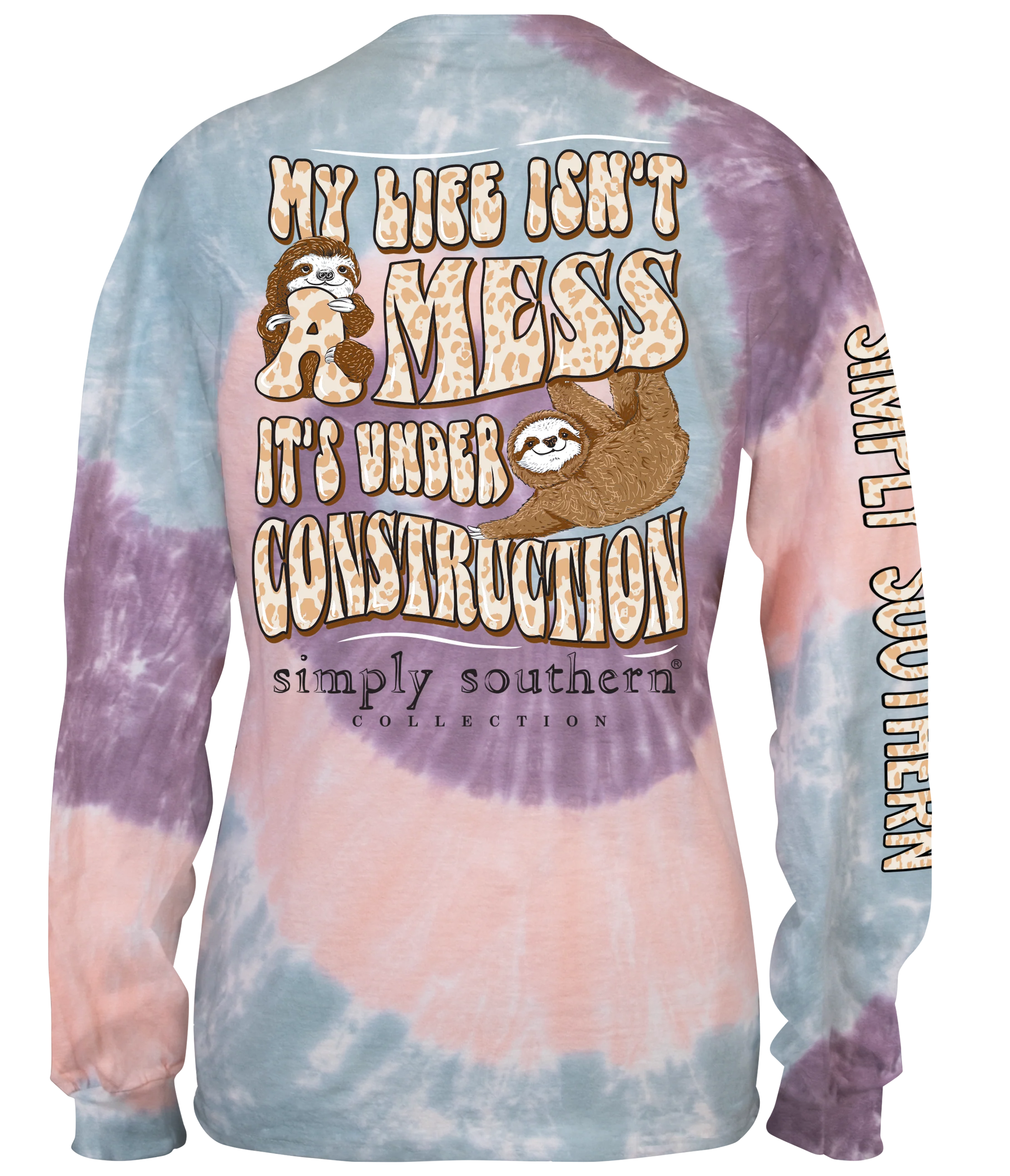 Simply Southern My Life Isn't A Mess Sloth Tie Dye Long Sleeve T-Shirt